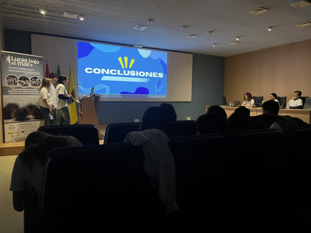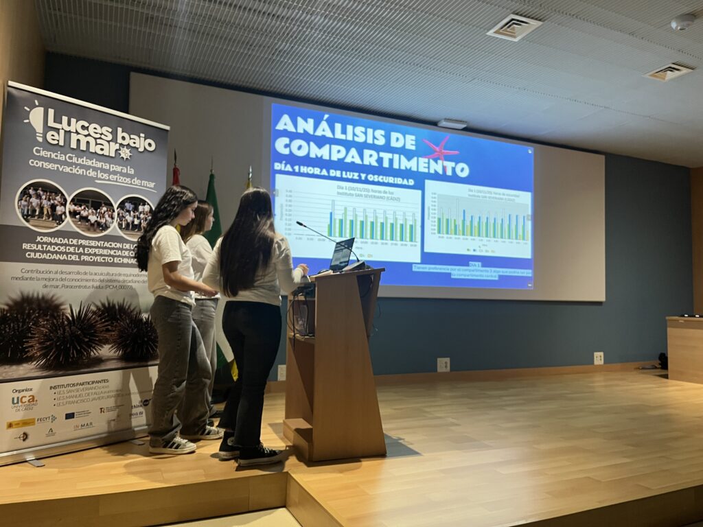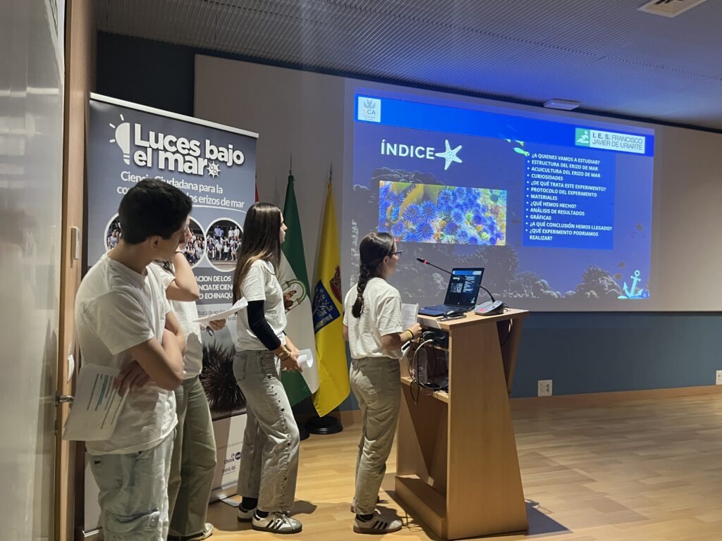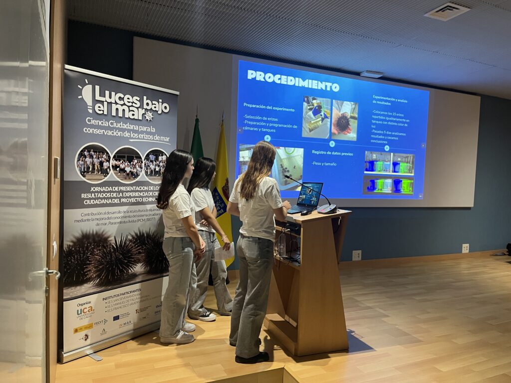 El proyecto de la UCA (Universidad de Cádiz), Echinaqua, enmarcado en ThinkInAzul Andalucía (Plan Complementario de I+D+i en Ciencias Marinas), ha desarrollado una iniciativa de ciencia ciudadana para concienciar sobre la importancia de la conservación del erizo de mar, titulada: “Luces bajo el mar”. Los tres institutos de la provincia de Cádiz que han participado en la experiencia han presentado hoy, 12 de diciembre de 2025, los resultados de sus jornadas de investigación.