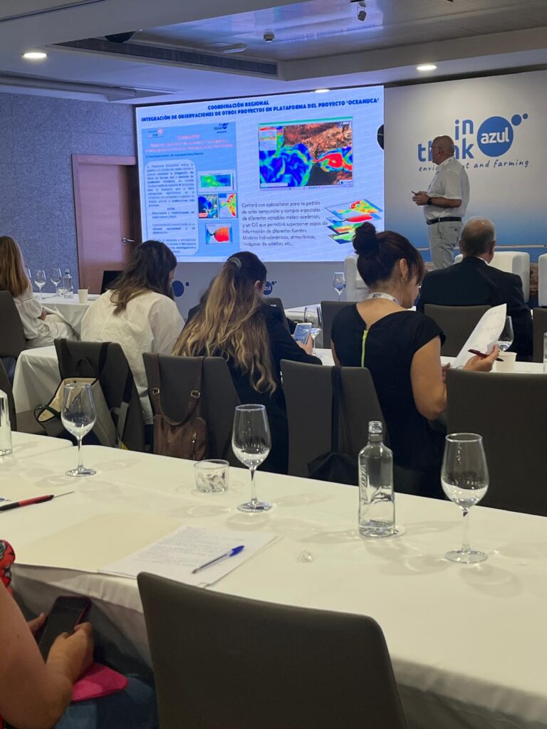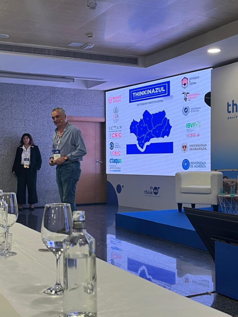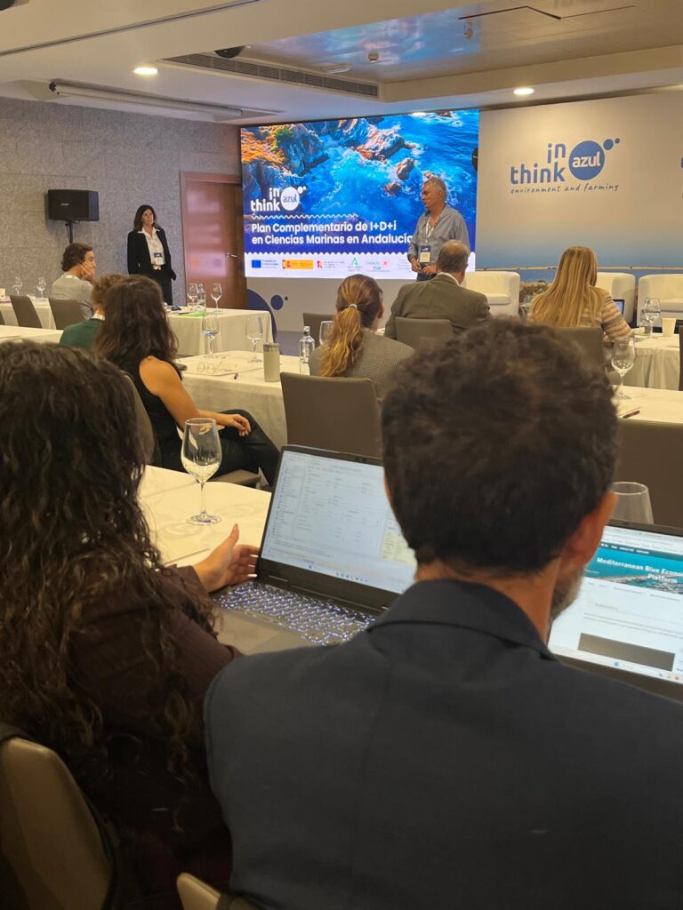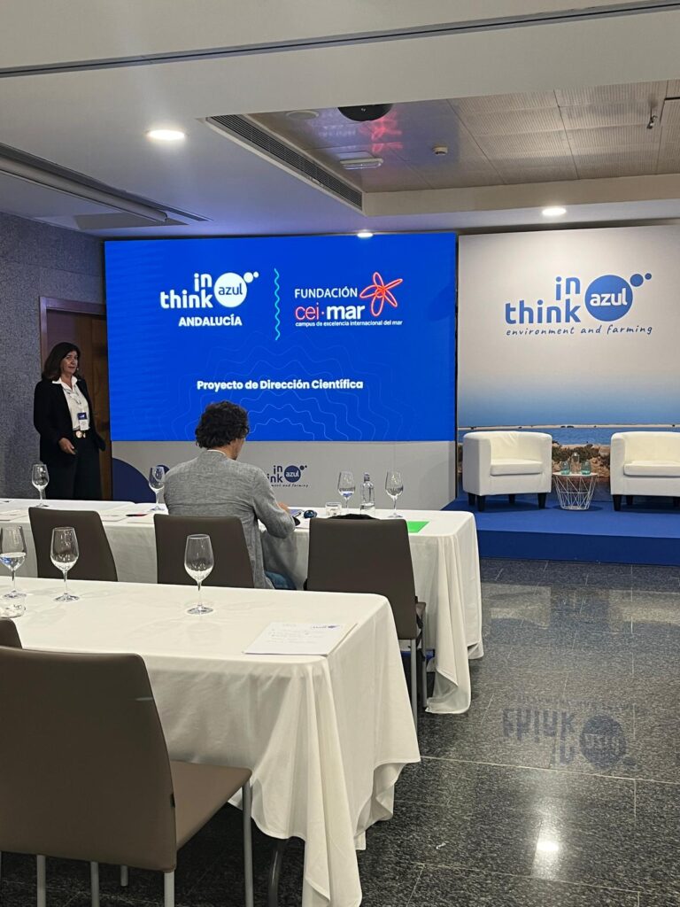 El consejero técnico de la secretaría General de Investigación e Innovación de la Junta de Andalucía, Antonio Valverde, asistió igualmente a un evento en el que ThinkInAzul Andalucía participó ampliamente, a través de la colaboración de su IP (Investigadora Principal), Carmen Garrido; el coordinador de la LA1, Miguel Bruno (Universidad de Cádiz – UCA); los coordinadores de la LA2, Miguel Mancera (UCA) y Mabel Sáez (Universidad de Almería – UAL); el coordinador de la LA3, Juan Vidal (UCA); y dos investigadores con proyecto vinculado a ThinkInAzul Andalucía: el Co-Ip de GIBMAR-BB, Lucas Cervera; y la IP de TidUtil, María Reyes Sánchez Herrera, también vicerrectora de Transferencia y Desarrollo Territorial de la Universidad de Huelva (UHU). El proyecto de dirección científica de ThinkInAzul Andalucía está coordinado por la Fundación CEI·MAR, estando esta representada en el encuentro por su directora-gerente, Eva, Mena.
